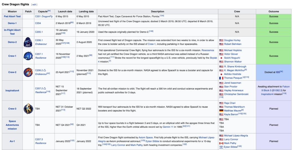 SOURCES- Wikipedia, NASA, SpaceX