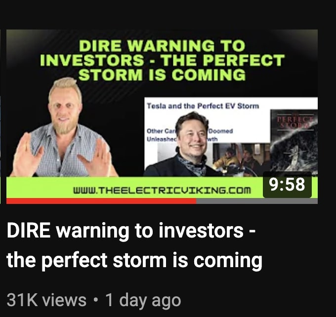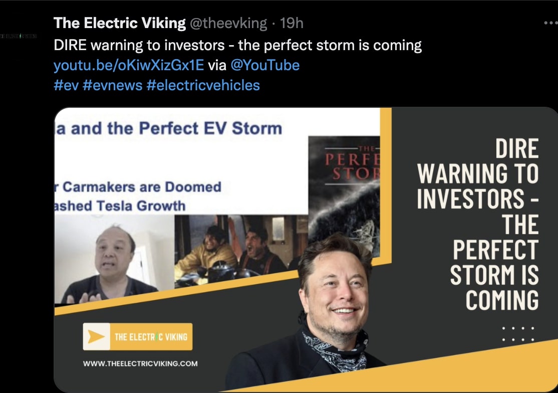 Sam obviously saw my Perfect EV Storm video. He uses my thumbnail in his tweeted video announcement and uses my phrase “Perfect Storm” is coming for EV.