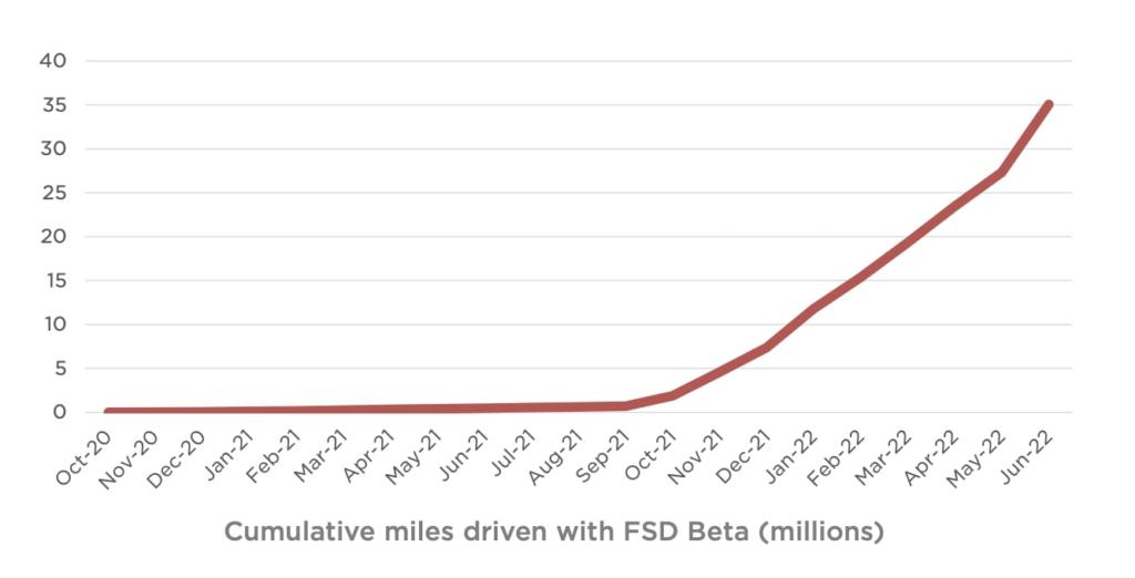 Tesla has given its mile driven with over 100,000 testers with FSD beta. Tesla has more self-driving miles in the last 6 months than other companies have ever had driven. The chart is for cumulative miles driven. They are adding