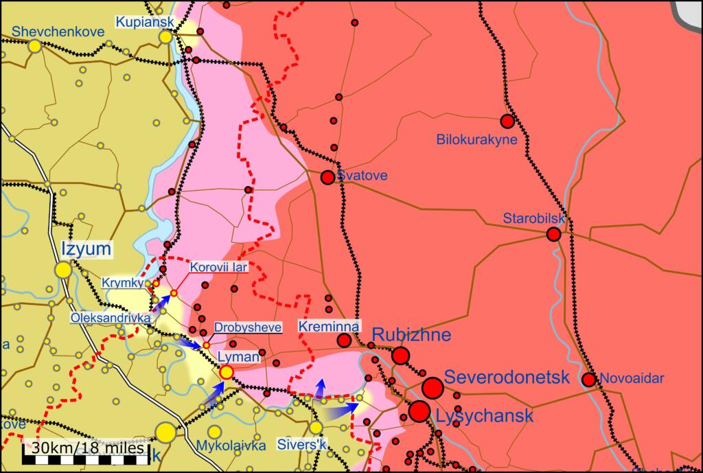 There are reports that Ukraine is pushing into Lyman and several areas near the major breakthrough near the city of Izium.