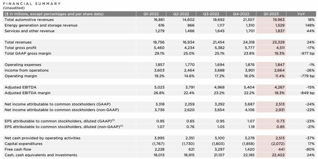 Tesla released its first quarter 2023 financial report and had 19.3% auto gross margin. Energy storage increased to 3.9 Gigawatt hours which is about 1000 megapacks in a quarter. The Energy revenue increased to $1.5 billion in the quarter.