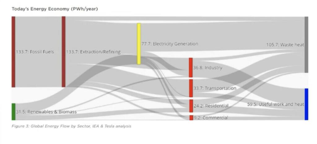 Tesla analyzed the hourly energy usage around the world and how that would compare to solar and wind and other energy generation.