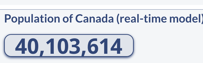 Canada now has 40.1 million people. Statscan realtime calculation is an increase of over 103,000 in two weeks since passing 40.0 million. If this pace was kept up Canada would add 1.3 million more people in the remainder of 2023.