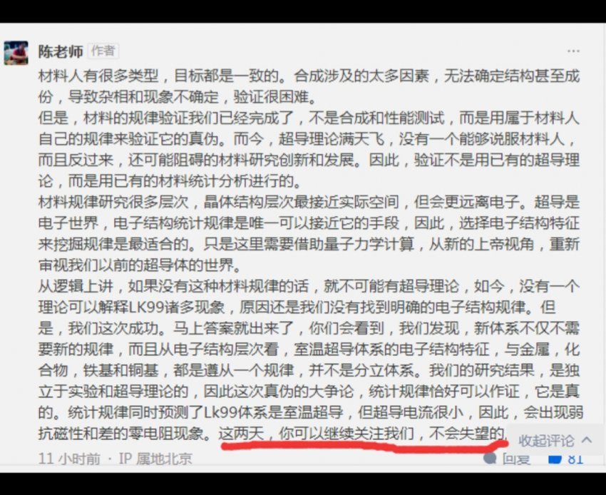 The post from Professor Chen at the Beijing University of Science and Technology :