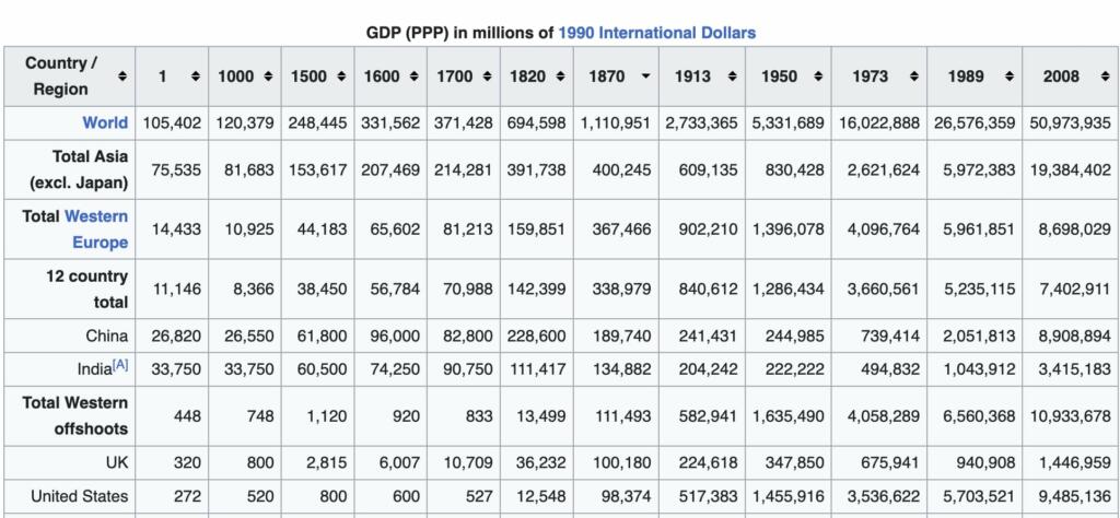 But OK, so what, right? Who’s to say that the next round of revolutionary growth can’t happen with a fixed or even declining world population. The growth of the world’s GDP (taken from the table given above) would appear to be 100× or so from 1870 to 2023, extrapolating a bit at the end. What part of that is demographic? Quite a bit! 1.4 billion then, and what, 8.04 billion now. 5.7x the number of people.