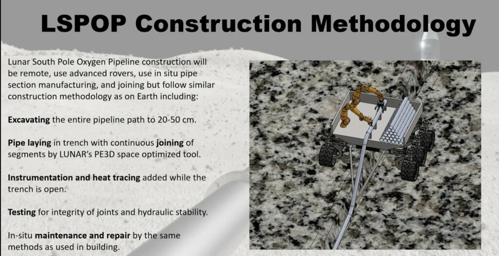 3 hours and 5 minutes into the second day of the NASA NIAC 2023 symposium there is a presentation on a lunar oxygen pipeline from the moon’s South Pole.