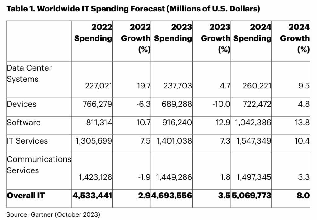 Cloud and AI-driven spending will climb 20% to 25% in 2024 and will outpace expectations for a modest increase in IT budgets. Microsoft seems to be increasing AI driven spending by 60-100%.
