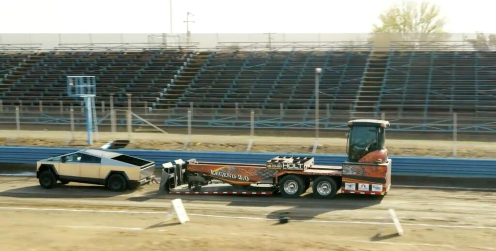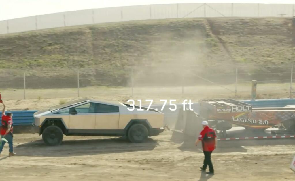 The Trimotor Cybertruck can out pull a Ford F350 on the 40,000 pound sled test.