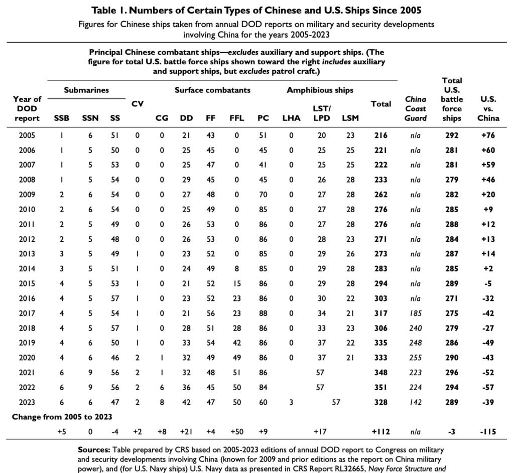China’s Navy has more ships than the US but only a few have nuclear propulsion. China has 7-10 nuclear powered submarines. China’s current small aircraft carriers are not nuclear powered.
