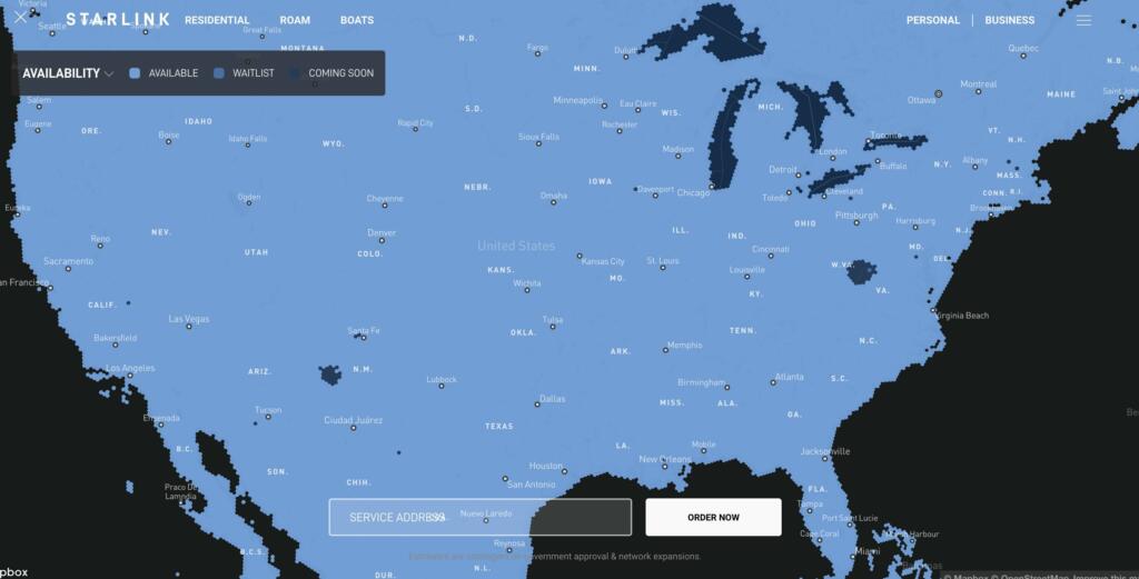 SpaceX Starlink Coverage Map – Dark Blue Waiting List