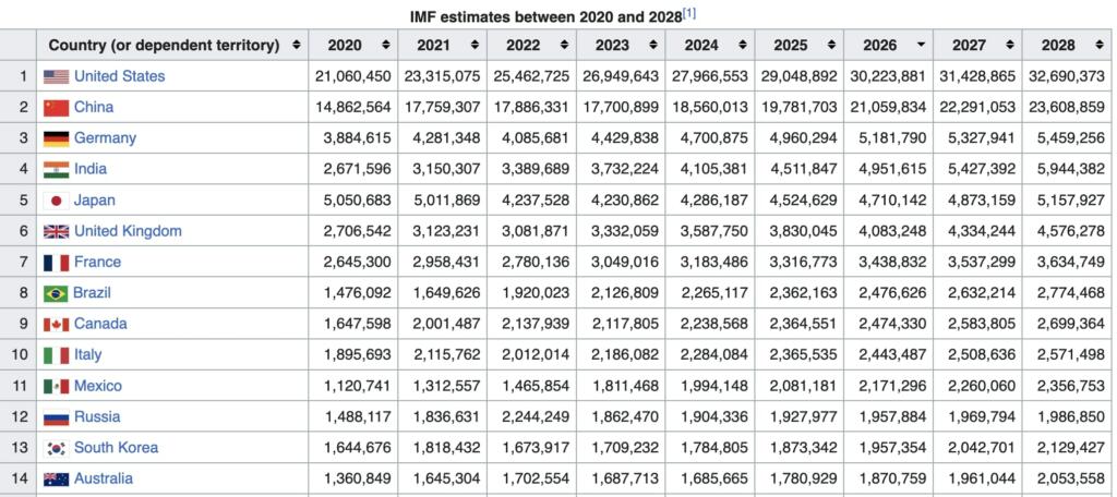 Official data has reports Japan economy in 2023 was $4.2 trillion in 2023, while Germany’s was $4.5 trillion. The U.S., the world’s largest economy, is expected to grow 5.8% to $26.94 trillion. China’s economy, the world’s second-largest, is forecast to shrink 1.0% to $17.7 trillion.