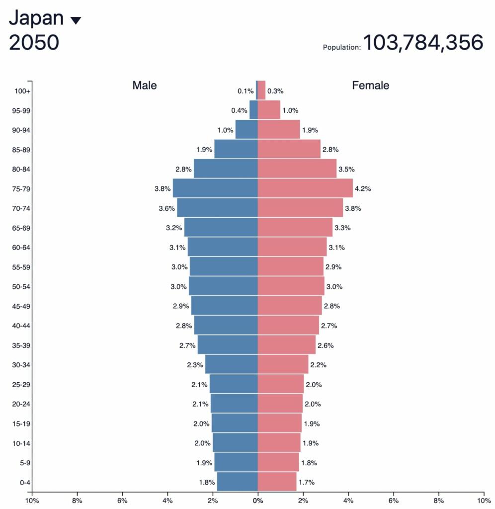 Here is the projection for Japan in 2050 with 100 million people.