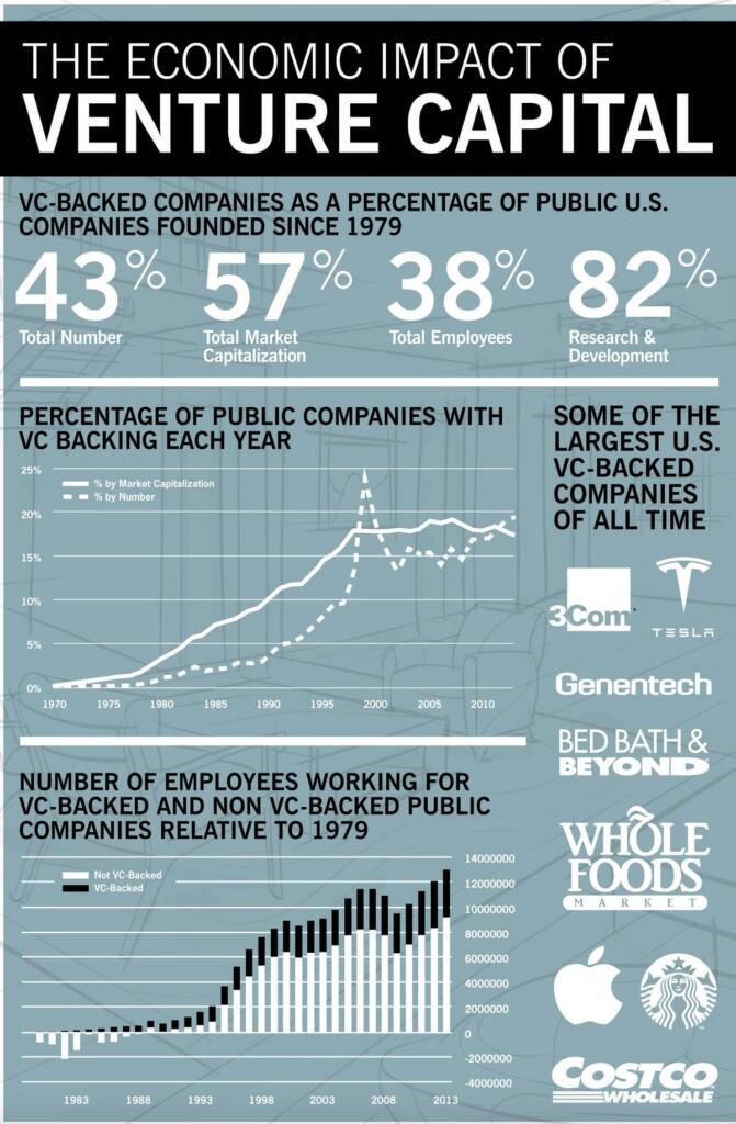 Here is a 2015 Stanford analysis of the impact of venture capital backed companies. The importance and contribution of companies that were started with venture capital has only increased. Venture capital backed companies are now well over half of the value of the SP500 stock index.