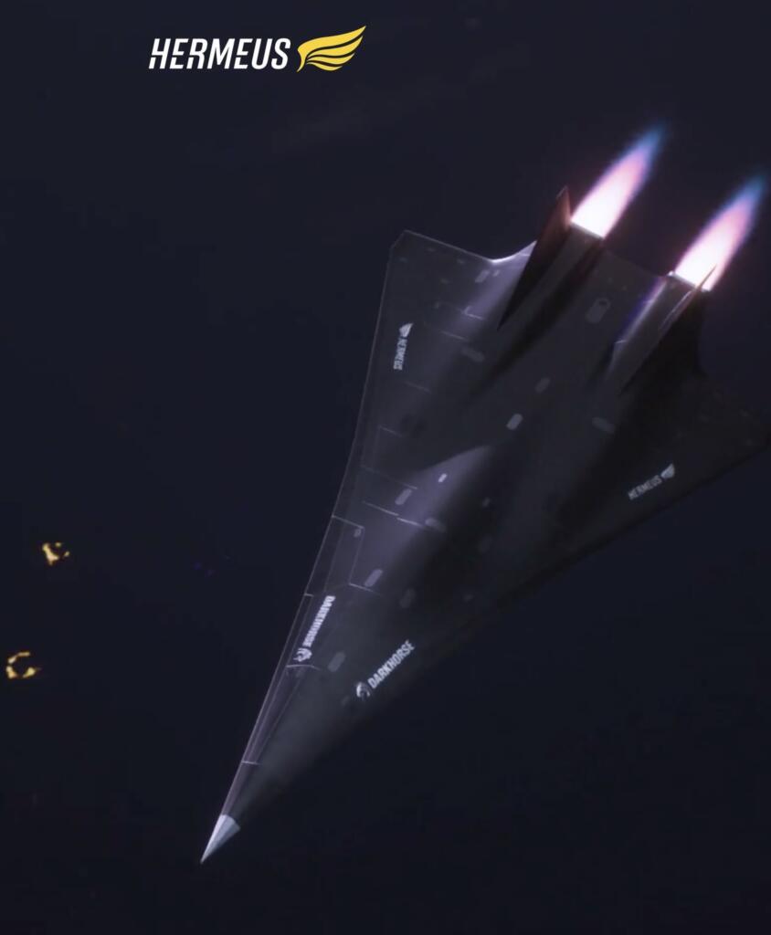 Like Quarterhorse, Darkhorse will be powered by a Hermeus-developed turbine-based combined cycle engine. This version of Chimera is significantly more powerful as it integrates the Pratt & Whitney F100.
