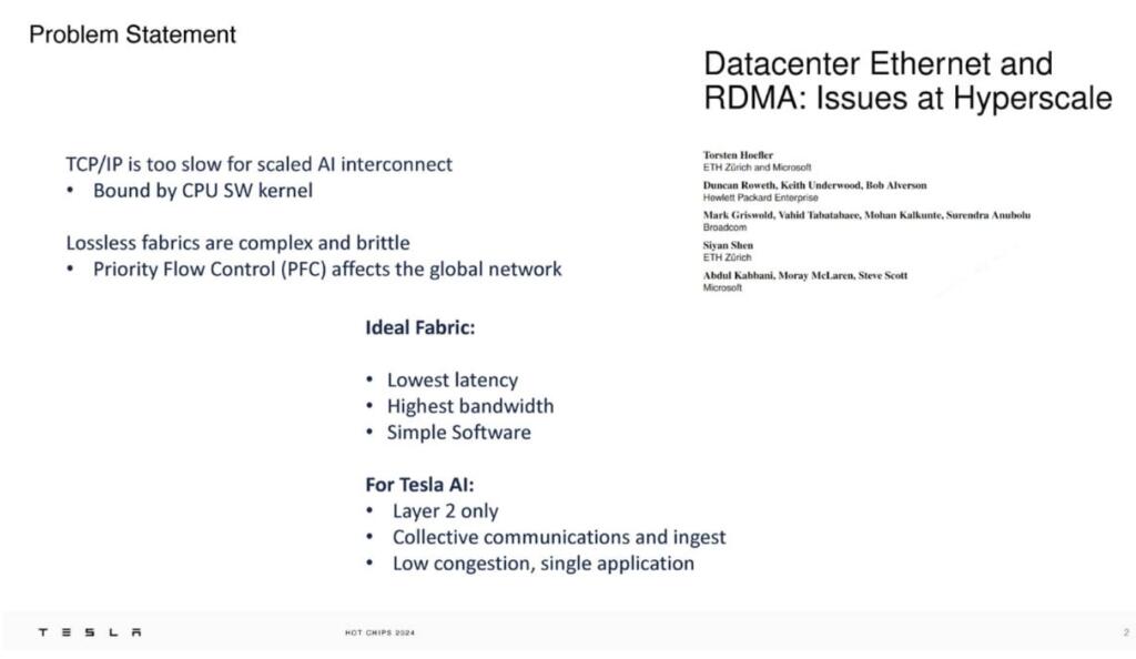 Tesla just presented a highly technical talk about Dojo’s networking protocol at the Hot Chips conference. Here are some high level tidbits I was able to extract.