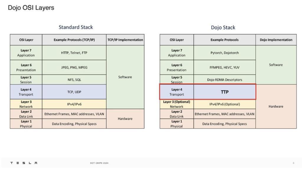 With Dojo, Tesla created their own networking protocol (Telsa Transport Protocol over Ethernet) to replace TCP/IP and others (like Nvidia’s NVLink) to reduce latency by orders of magnitude. Latencies: