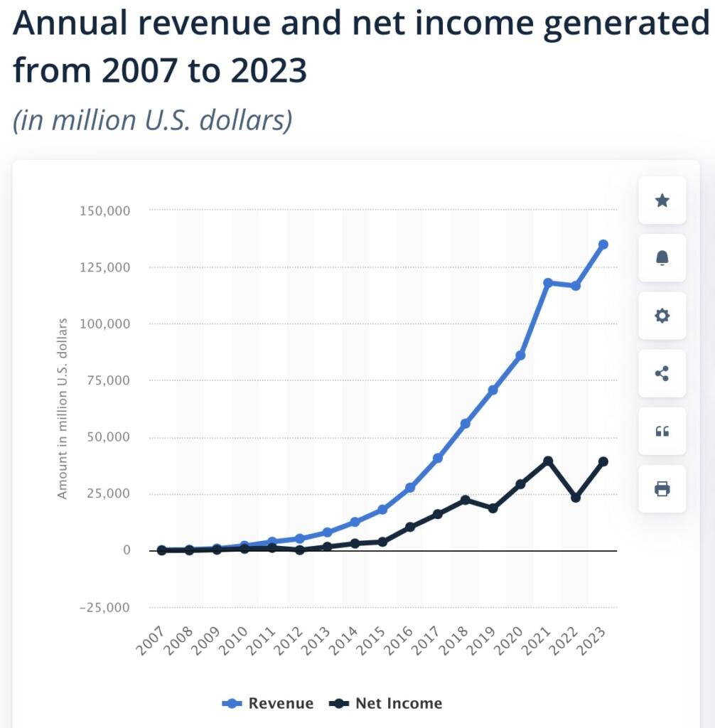 Meta has spent about $50 billion researching and developing the virtual Metaverse since 2019. This spending is continuing and with new AI spending could be grow from $10 billion per year to over $20 billion per year. Meta is getting very little revenue from the Metaverse investment. Meta Net income was almost $40 billion last year and will be over $50 billion in 2024.