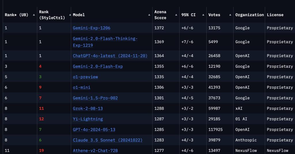 Benchmark Performance: In benchmarks like Chatbot Arena, Gemini 2.0 Experimental Advanced ranks at the top, slightly above the latest version of OpenAI’s ChatGPT-4o, showcasing its prowess in handling hard prompts, coding, and longer queries.