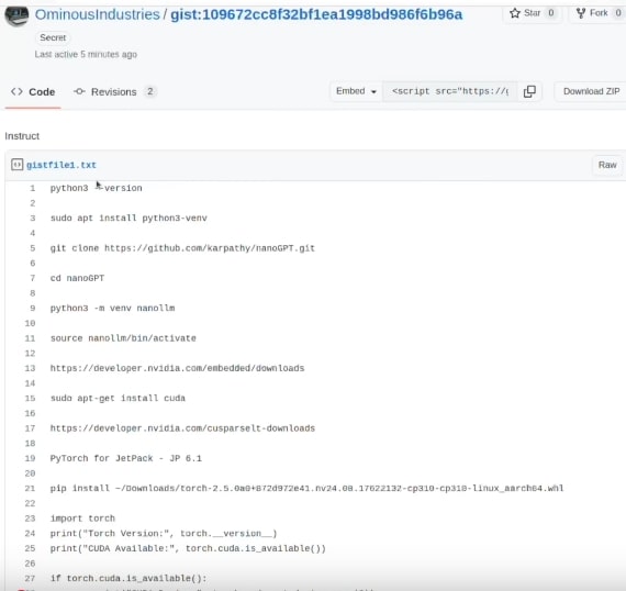 This takes the NVIDIA Jetson Nano to the next level by training a Large Language Model (LLM) completely from scratch. It uses the lightweight and efficient NanoGPT framework,