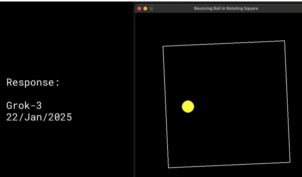 xAI Grok 3 will out in about two weeks. It is good at writing code and modelling the physics of the real world. It made code in python for ball bouncing inside a square and inside a tesseract.