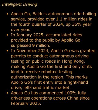 Baidu revealed progress of their subsidiary, Apollo Go on their earnings call.
