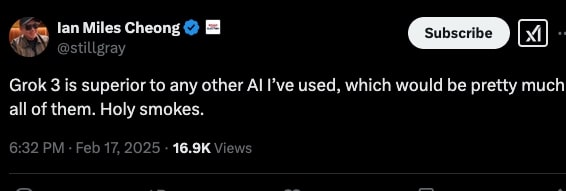 AI expert, Ian Miles Chong, has used Grok 3 and says it is the best.