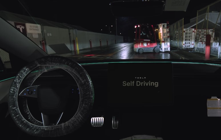 All 1500+ new Tesla cars drive from the Fremony factory to the loading docks every day. This is about 2000 miles per day of driving without a human driver. They could also drive from truck offloads to shipping lots in Austin, Shanghai, Berlin. It will move up from 2000 miles per day to 6000-20000 miles per day. This is not yet on public roads but avoiding forklifts and workers at all times of days and conditions. It is on a private area with traffic signs and crosswalks and random work activity and other vehicles.