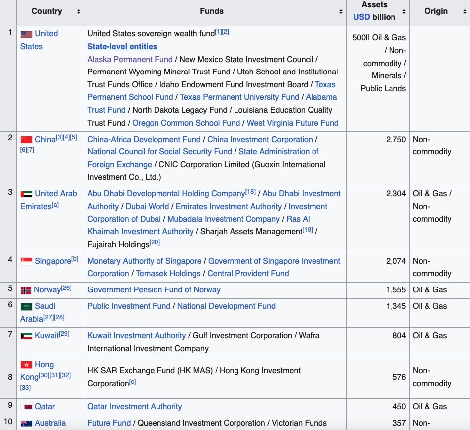 The US is creating a national sovereign wealth fund. There have been several states that have made wealth funds. Alaska has a $64 billion fund.