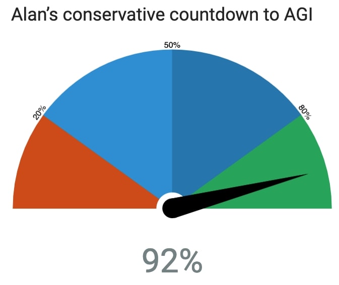 Life Architect countdown to Artificial General Intelligence is at 92%.