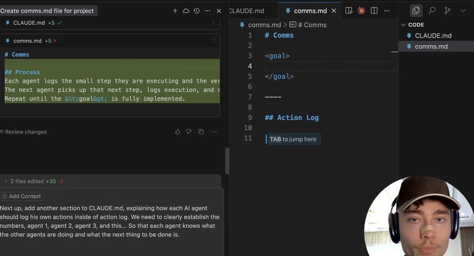 How it Works:Create MD files: coms.md (for action logs and inter-agent communication) and cloth.md (system prompts for all agents).
