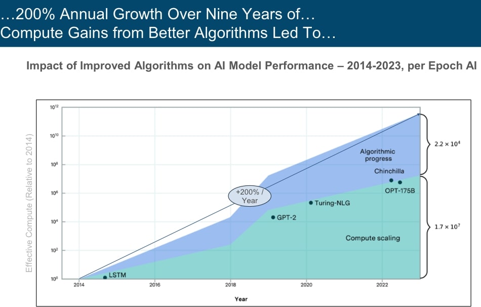 AI models are improving exponentially (150% annual growth in supercomputer performance; 200% in compute from algorithms).
