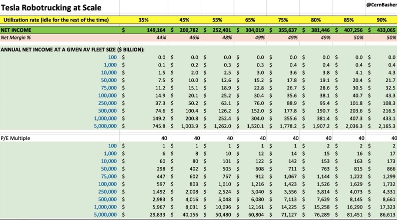 Cern adapted his robotaxi financial models for trucking.