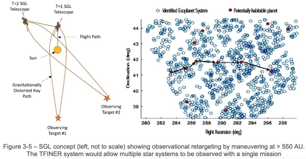 A critical capability that the TFINER concept enables is repointing the gravitational lens at different targets over the course of the mission. Existing solar sail concepts require