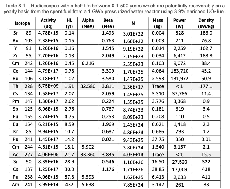 These probably need to be manufactured in space, it’s not like you can compactly store them for launch given the heat production, and given the short half-lives you want to launch as soon after manufacture as possible.