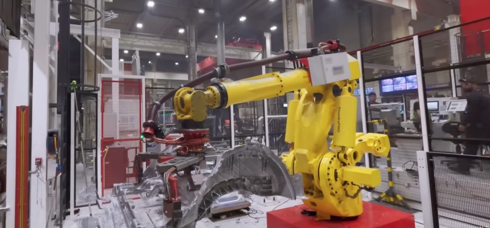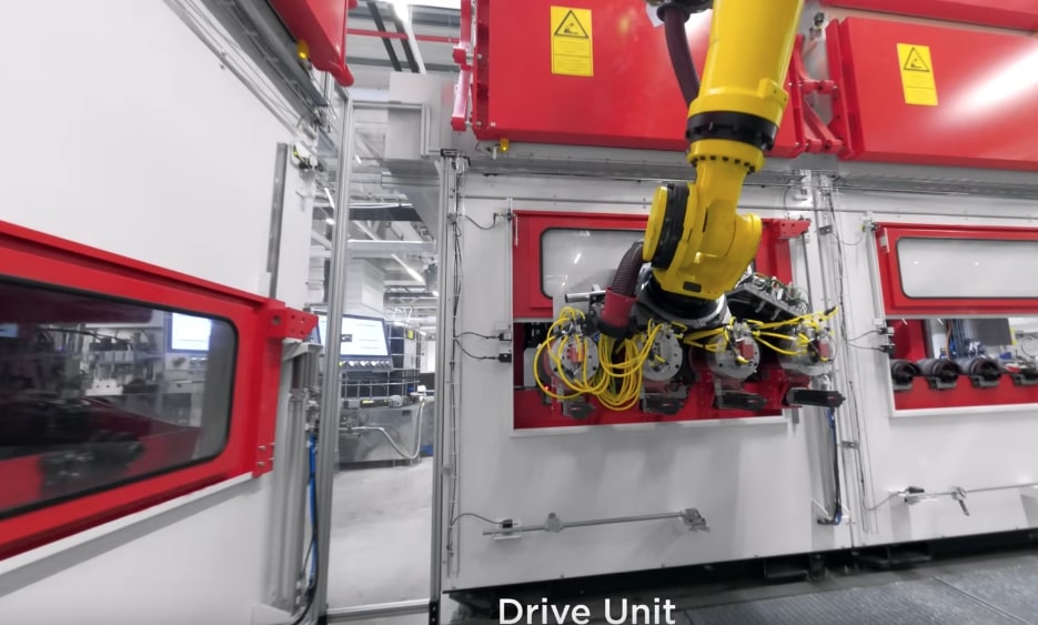 Efficiency: Berlin overtook Shanghai as Tesla’s most efficient factory. There is friendly competition which drives improvements. Line speed ~60 seconds per car and is capable of 39 seconds. ~1,400 weld points per car (60m of glue, 130+ self-piercing rivets via yellow SPR guns).