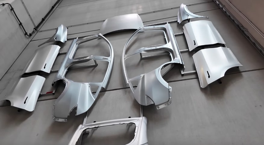 Individual closures (doors, liftgate, hood) are built separately and attached before painting for efficiency.