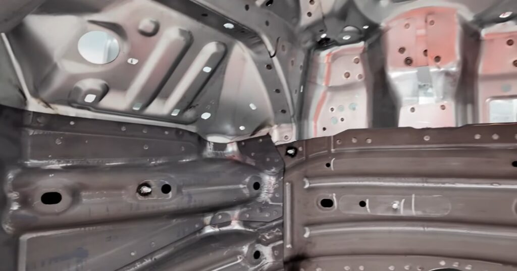 Tesla Employee Áine explains BIW. Stamping and casting parts are assembled using glue, welding, and bolting into sub-assemblies (front end, rear end, center underbody).
