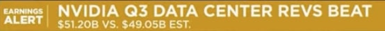 Nvidia earned an adjusted $1.30 a share on sales of $57 billion in the quarter ended Oct. 26. Analysts polled by FactSet had expected Nvidia to earn an adjusted $1.26 a share on sales of $54.9 billion in the quarter ended Oct. 26. In the year-earlier period, Nvidia earned 81 cents a share on sales of $35.08 billion.