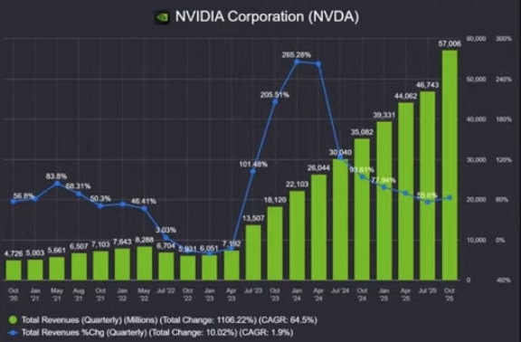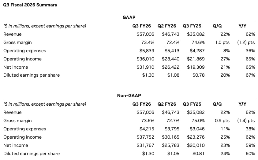 Third-quarter revenue was a record $51.2 billion, up 25% from the previous quarter and up 66% from a year ago.