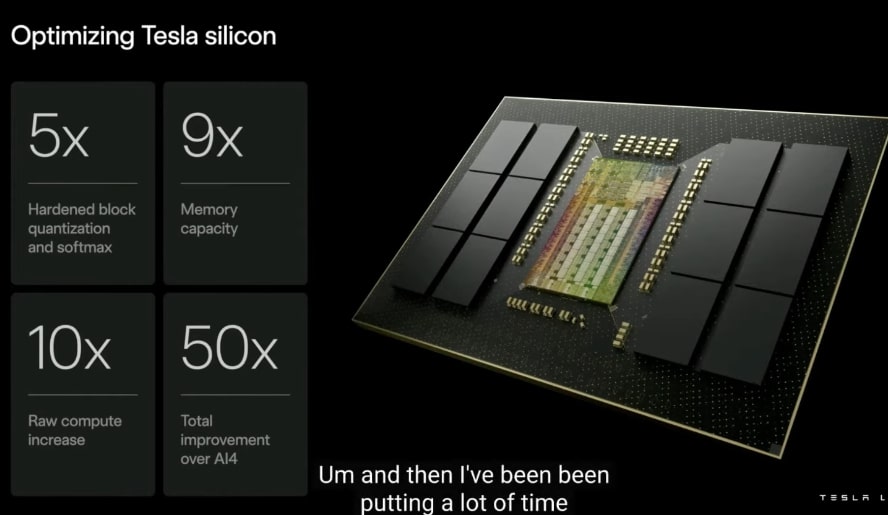 The Tesla AI 5 chip will have one third of the energy use, similar compute power to a B200. It will be at 10% of the cost.