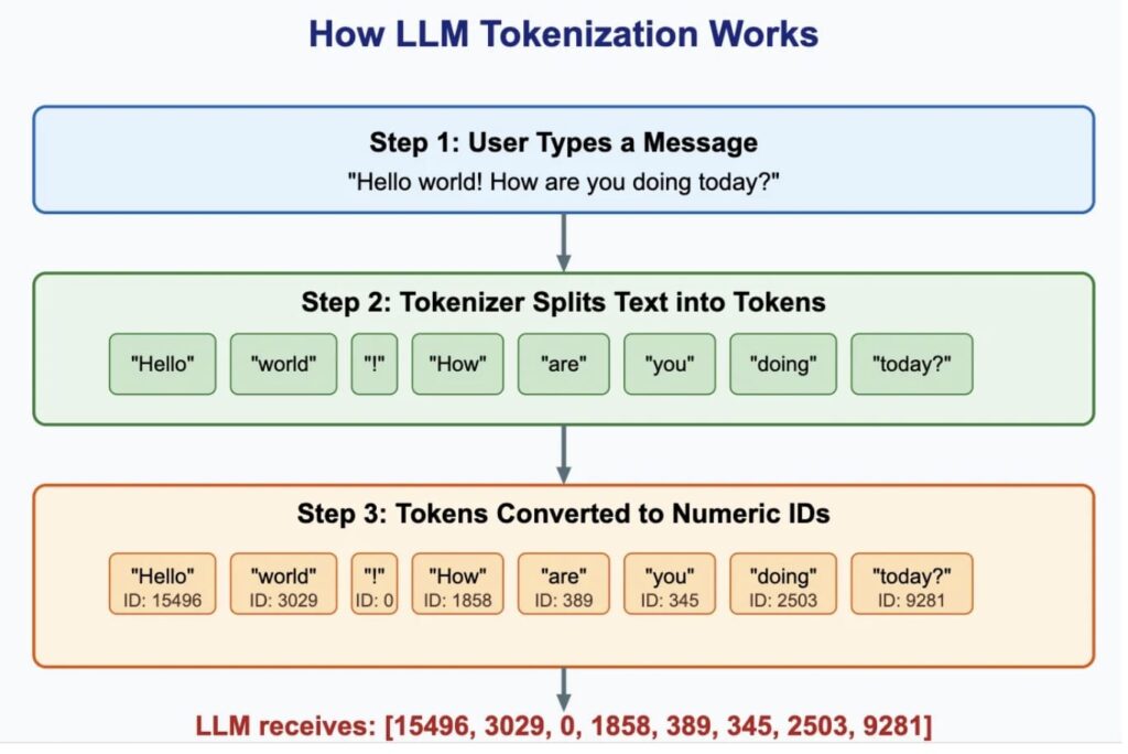 Tokens are the fundamental units that LLMs process. Instead of working with raw text (characters or whole words), LLMs convert input text into a sequence of numeric IDs called tokens using a model-specific tokenizer.