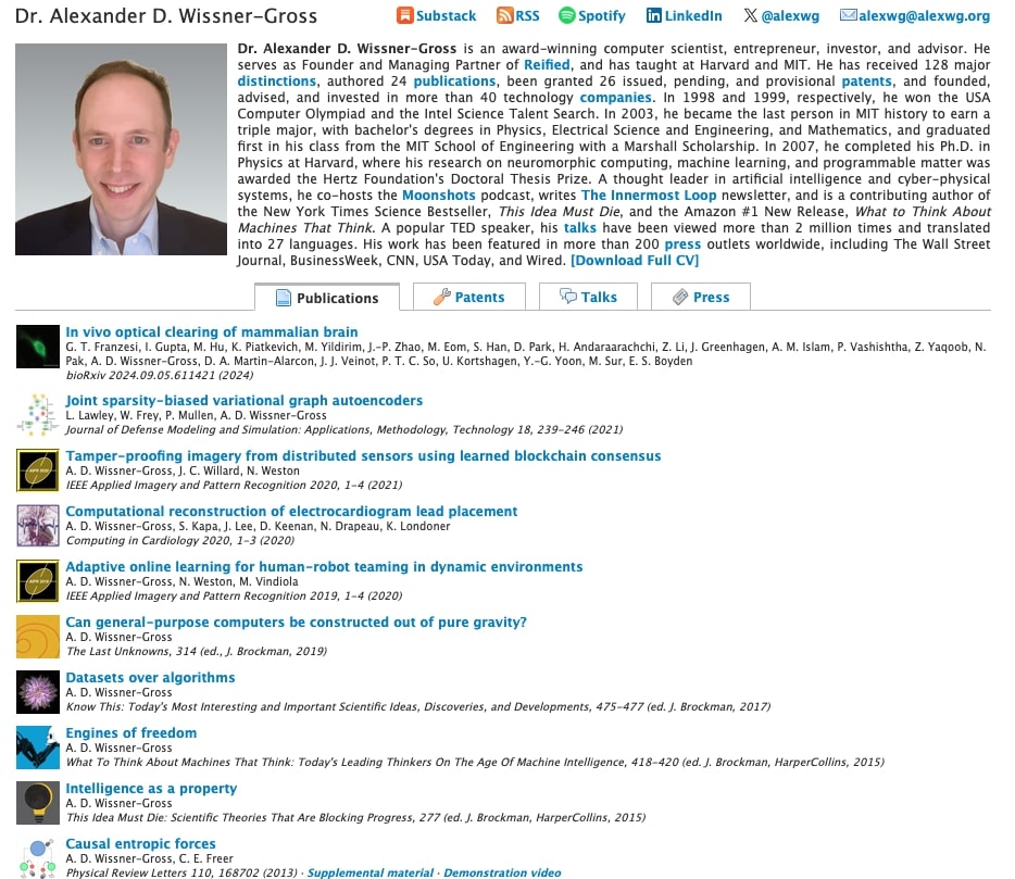 Background and Interdisciplinary Approach: With a Ph.D. in Physics from Harvard, Wissner-Gross blends machine learning, neuromorphic systems, and physics for smoothing the singularity.